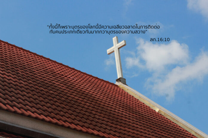 นายนึกชมผู้จัดการทุจริตคนนั้นว่าเขาทำอย่างเฉลียวฉลาด ทั้งนี้ก็เพราะบุตรของโลกนี้มีความเฉลียวฉลาดในการติดต่อกับคนประเภทเดียวกันมากกว่าบุตรของความสว่าง”