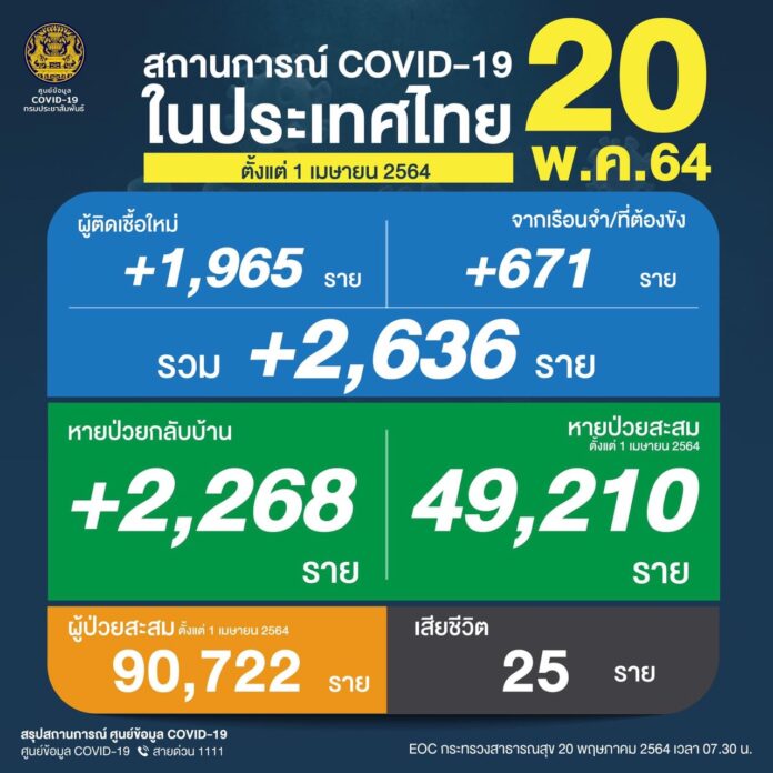 สถานการณ์การติดเชื้อ COVID-19 ในประเทศ วันที่ 20 พฤษภาคม 2564