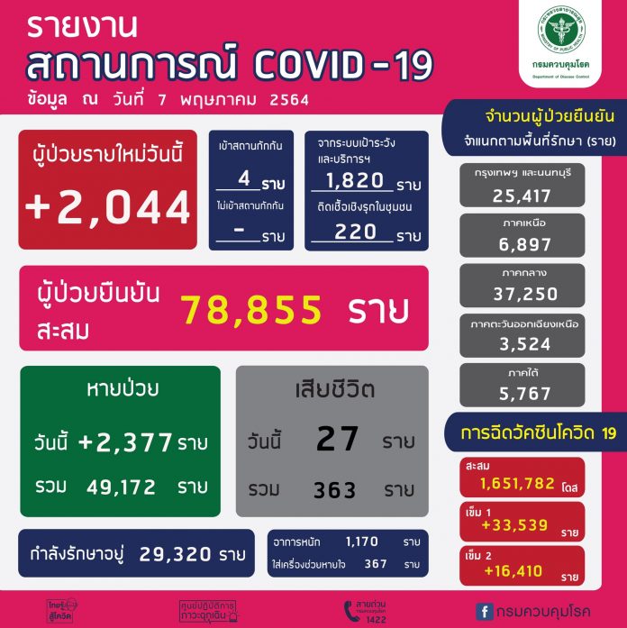 HomeCOVID-19Update รายวัน สถานการณ์การติดเชื้อ COVID-19 ในประเทศ วันที่ 7 พฤษภาคม 2564 By nsdiocese < 1 นาที 353 สถานการณ์การติดเชื้อ COVID-19 ในประเทศ ผู้ป่วยรายใหม่ 2,044 ราย ผู้ป่วยยืนยันสะสม 78,855 ราย หายป่วยแล้ว 49,172 ราย เสียชีวิตสะสม 363 ราย Share Facebook Twitter Pinterest Previous articleสถานการณ์การติดเชื้อ COVID-19 ในประเทศ วันที่ 5 พฤษภาคม 2564Next articleสถานการณ์การติดเชื้อ COVID-19 ในประเทศ วันที่ 8 พฤษภาคม 2564 Related Post Update รายวัน Update รายวัน... Update รายวัน Update รายวัน... Update รายวัน Update รายวัน... เรื่องล่าสุด Report 9 เรื่องราวรู้เกี่ยวกับการเสด็จเยือนแอฟริกาของสมเด็จพระสันตะปาปาเลโอที่ 14 Report สมเด็จพระสันตะปาปาเลโอที่ 14 เสด็จเริ่มต้นการเดินทาง เพื่อเสด็จเยี่ยมเชิงอภิบาล ครั้งที่ยาวนาน … มุ่งสู่ประเทศแอลจีเรีย Report สืบสานงานประเพณีสงกรานต์ อาสนวิหารนักบุญอันนา 2026 Report สมเด็จพระสันตะปาปาเลโอที่ 14: การเสด็จเยือนเพื่อการแสวงบุญในแอฟริกา Report พระราชดำรัสของสมเด็จพระสันตะปาปาในการเข้าเฝ้าทั่วไป : “ความศักดิ์สิทธิ์ไม่ใช่สิทธิพิเศษของเพียงไม่กี่คน” Load more