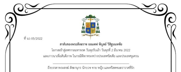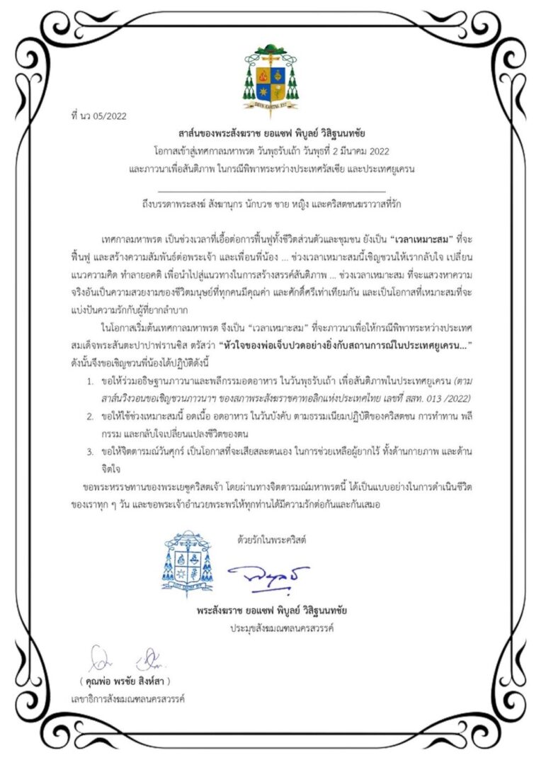 …ขอคำภาวนาจากทุกคนเพื่อวอนขอสันติภาพจากเหตุการณ์ประเทศรัสเซียพิพาทกับประเทศยูเครน….